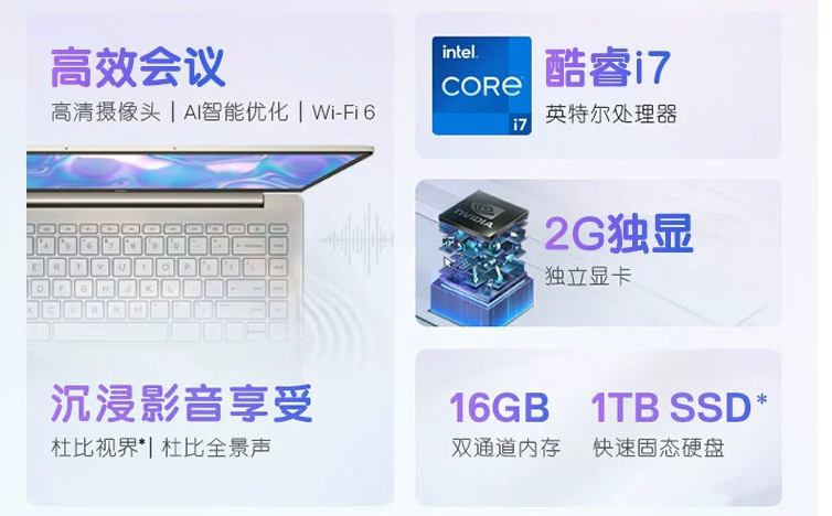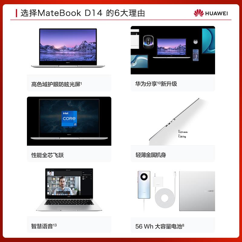 Huawei华为笔记本电脑i7商务办公大学生轻薄本便携