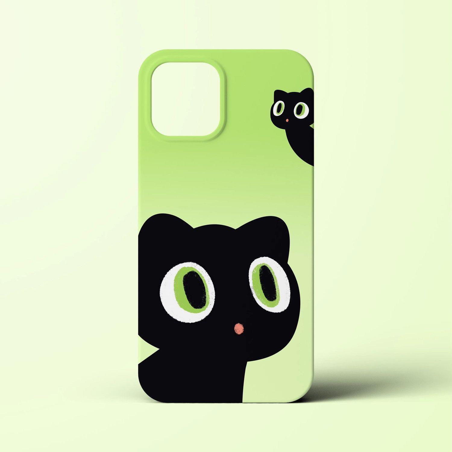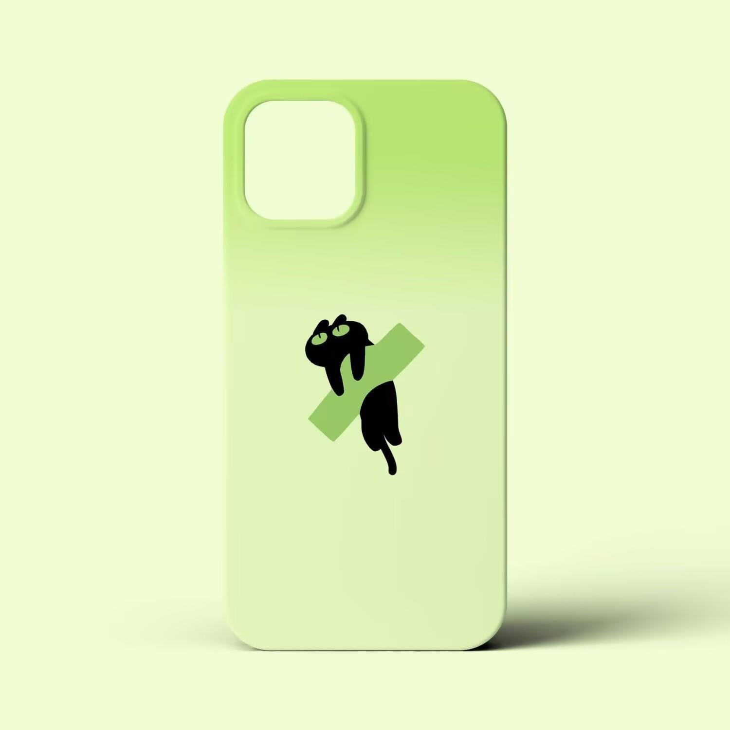 绿色小黑猫可爱 小清新简约苹果/OPPP/小米/华为/vivo超火液态硅胶手机壳