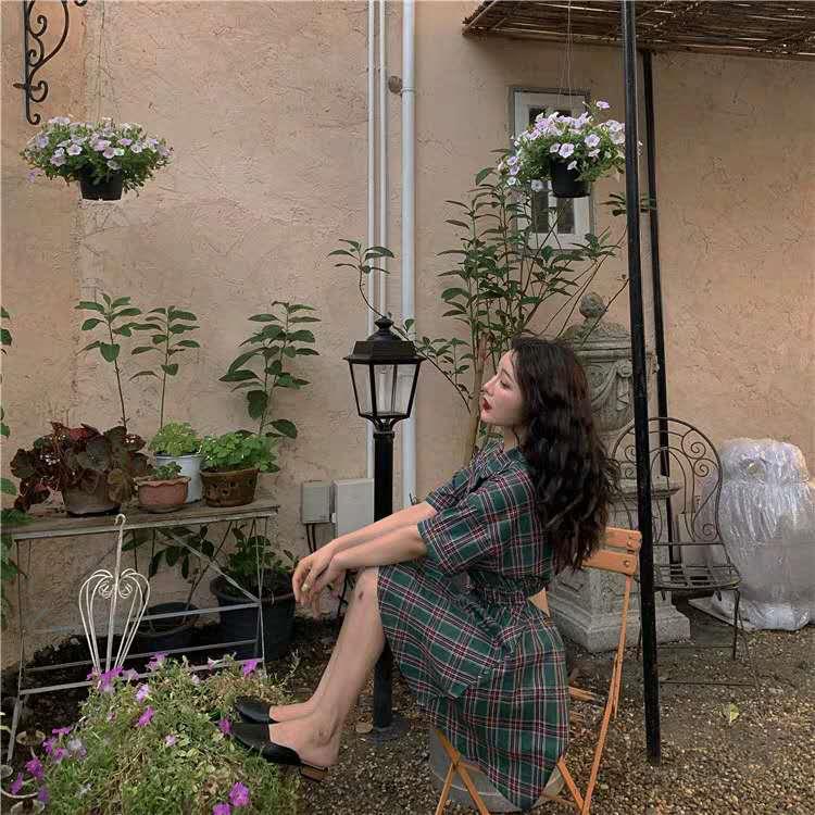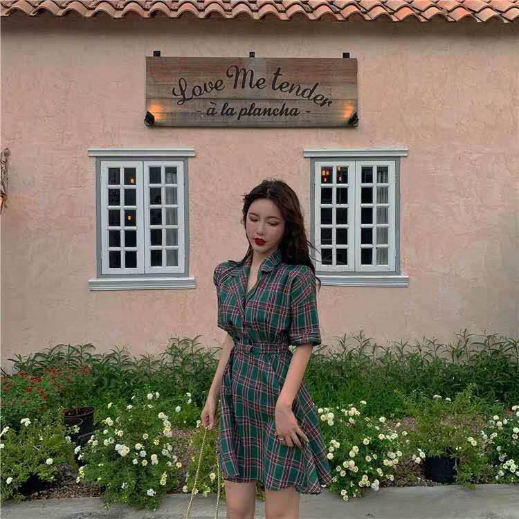 2020,夏季新款,复古露背,收腰短袖连衣裙!