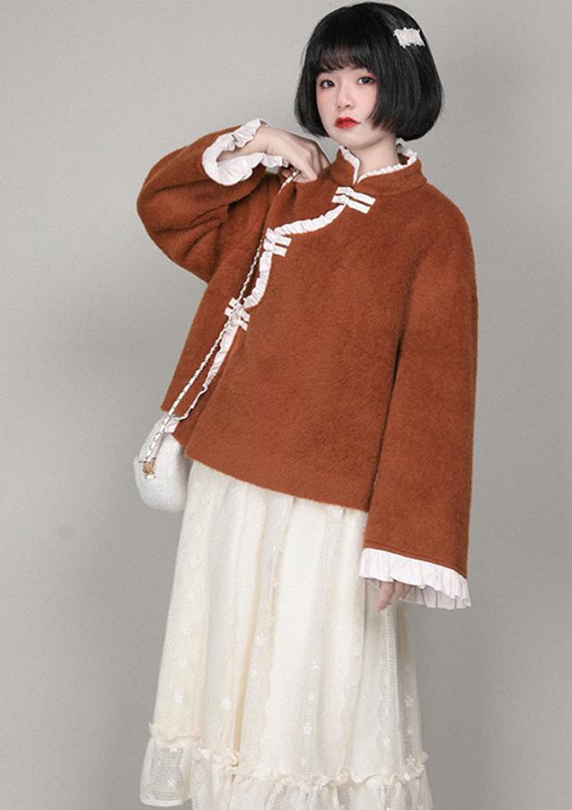 小葱良裁原创改良国风复古少女上衣盘扣木耳边加绒加衫秋冬短外套出自于原创服装设计师品牌小葱良裁。“葱”--洋葱是没有心的,而我的logo是在葱字外面圈了个圈圈,,其寓意表达我在设计一件衣服的时候,赋予它时尚的外表的同时也要赋予它本身的内涵,每一件衣服都需要被赋予内涵,而不能只有表象,葱牌专注做一个有心的设计。
