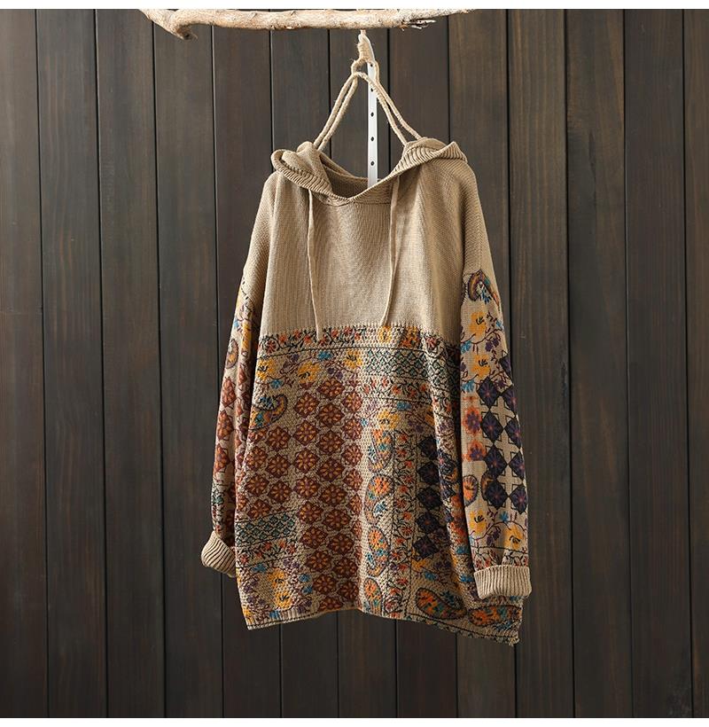 • 商品名称:复古印花彩色毛衣女连帽秋...