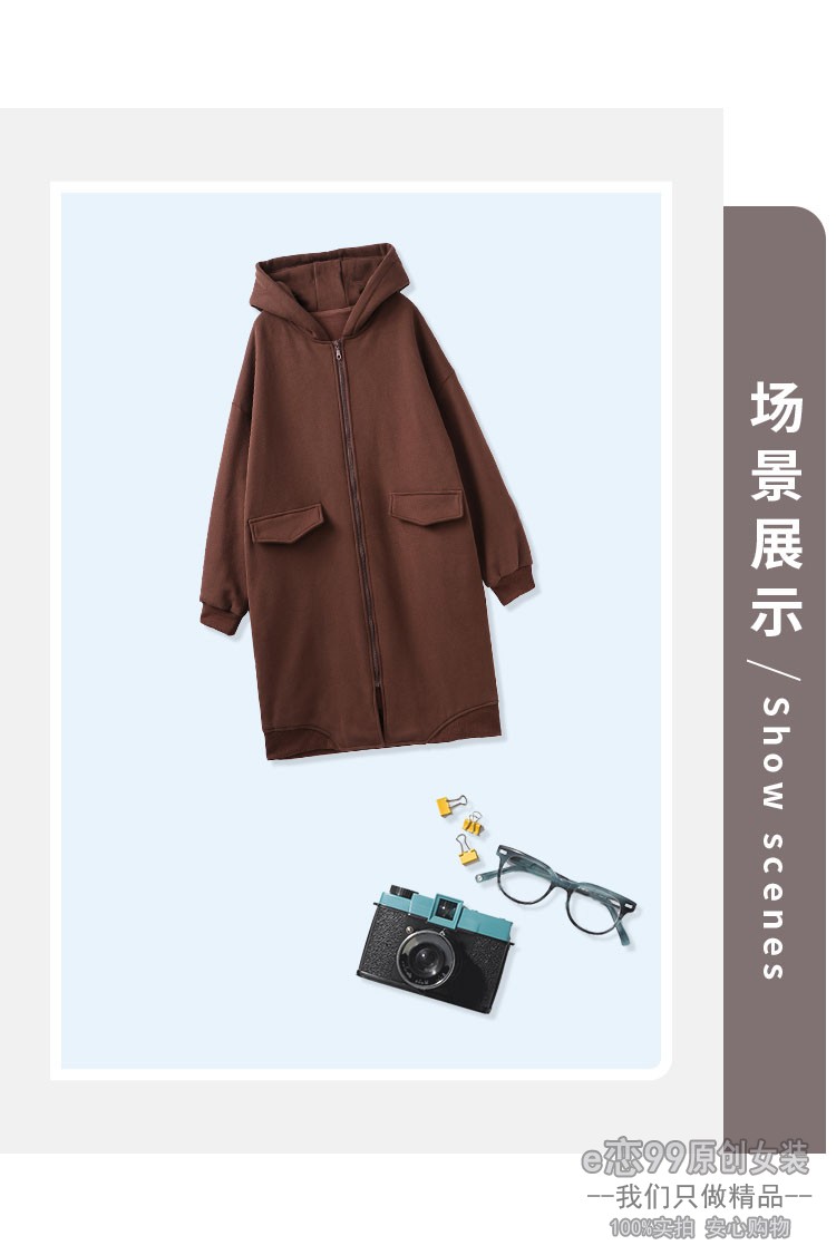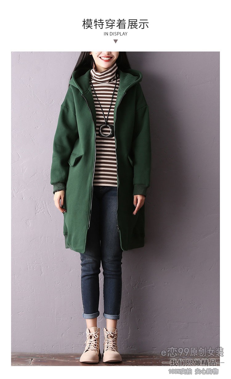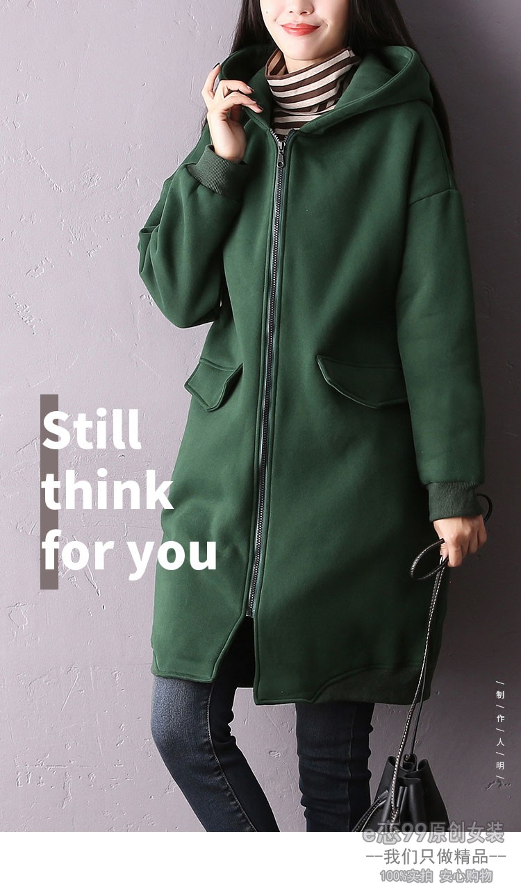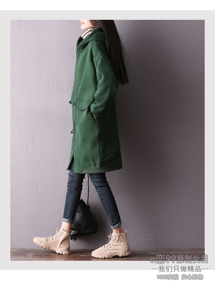 服饰箱包、运动户外 > 卫衣 > 秋冬大码女士加绒加厚直筒口袋长袖开衫连帽宽松拉链卫衣外套