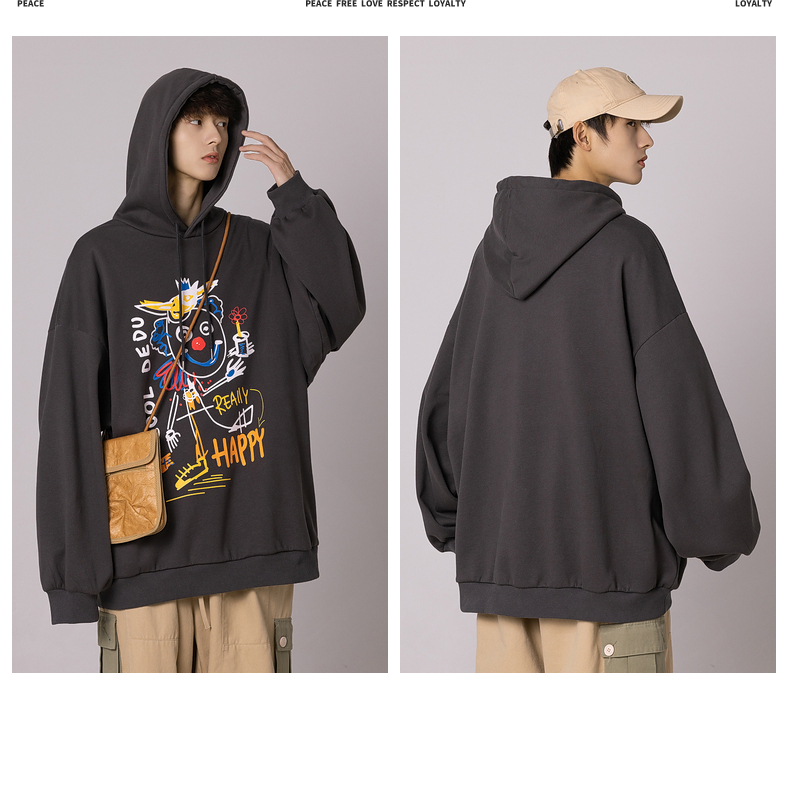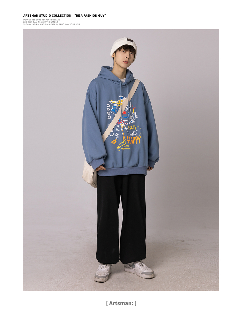 服饰箱包、运动户外 > 上装 > ARTSMAN 秋冬季ins涂鸦连帽卫衣男韩版潮流宽松帅气加绒加厚外套