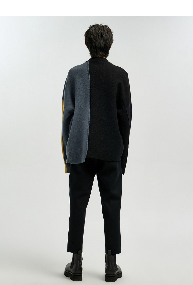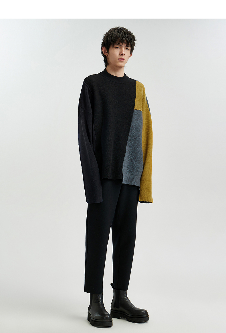 【商场同款】速写男装20冬新品毛衫圆领套头撞色拼接9K0820090