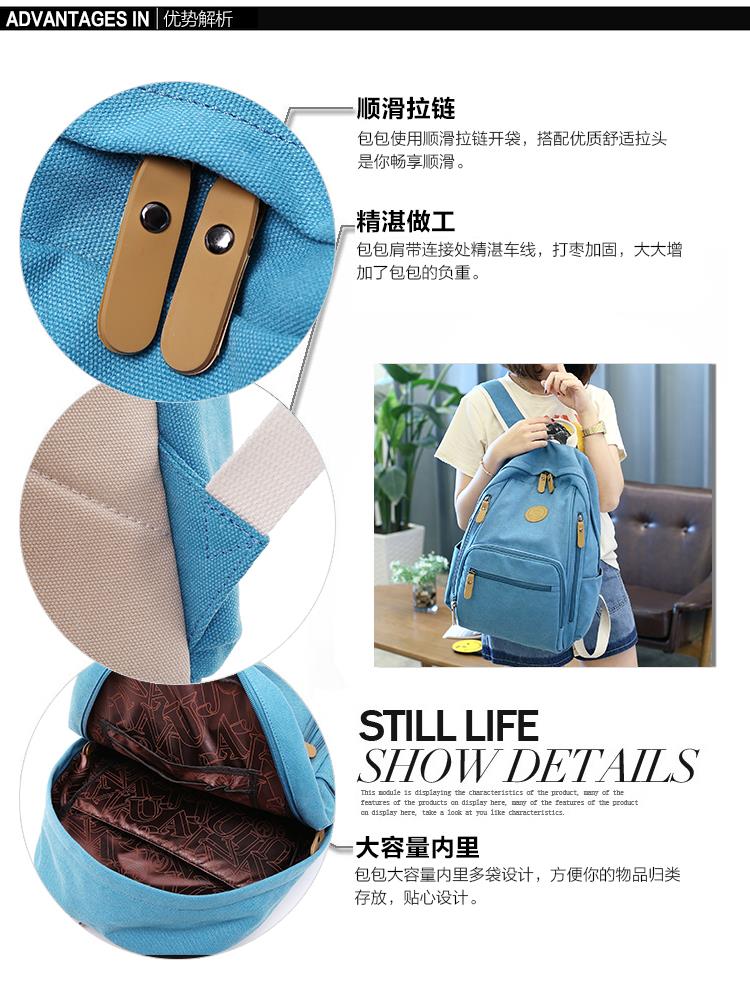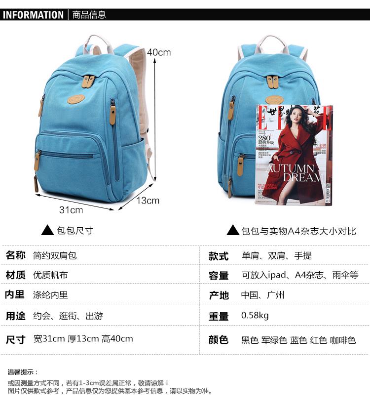文艺百搭款;外置口袋内含分区隔层;帆布透气不褪色;可放下A4课本或者杂志。
