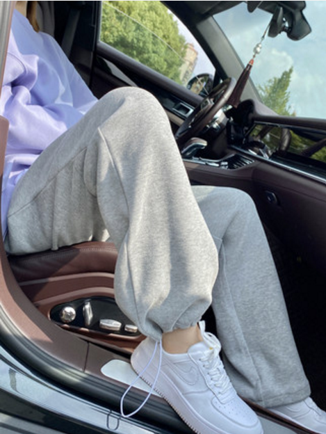 服饰箱包、运动户外 > 下装 > 灰色束脚运动裤女秋冬显瘦长裤卫裤休闲宽松冬阔腿加厚加绒裤子