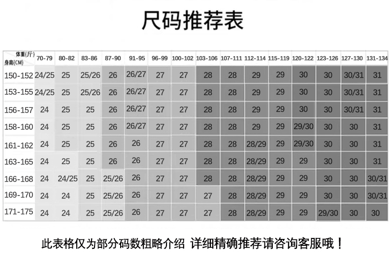 尺寸: 24 25 26 27 28 29 30 31 32 33 面料分类: 全棉牛仔布