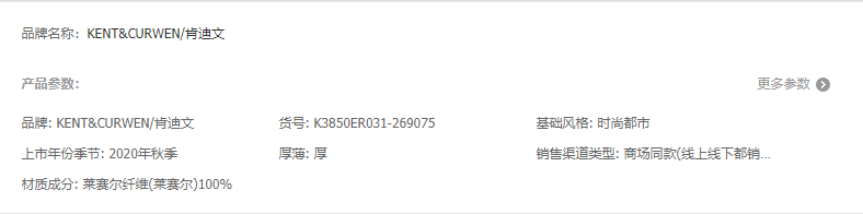 • 商品名称:KENT&CURWEN/肯迪文秋冬休...
