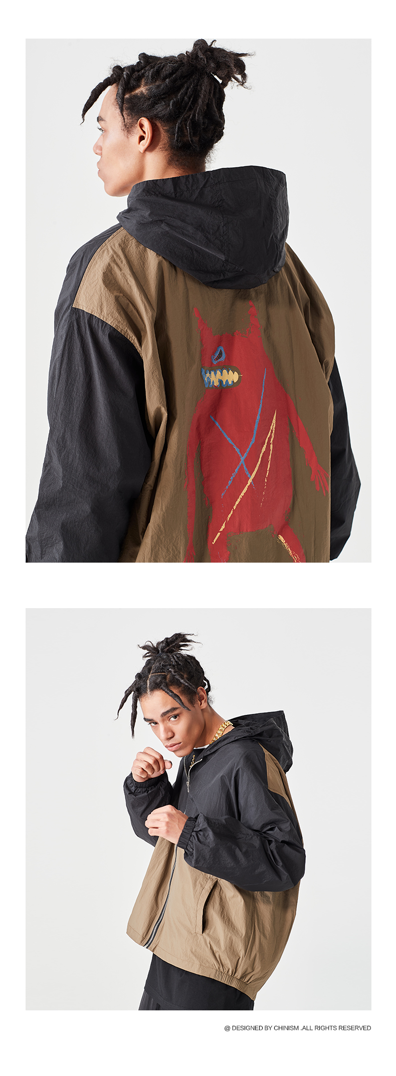 服饰箱包、运动户外 > 卫衣 > CHINISM 2020AW 秋季连帽外套男潮牌撞色拼接街头嘻哈青年潮夹克