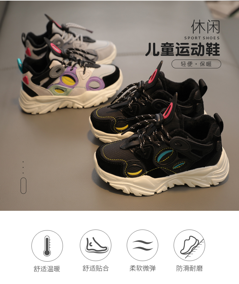 芭芭鸭儿童运动鞋男童老爹鞋网红女童二棉鞋加绒保暖冬鞋2020冬新
