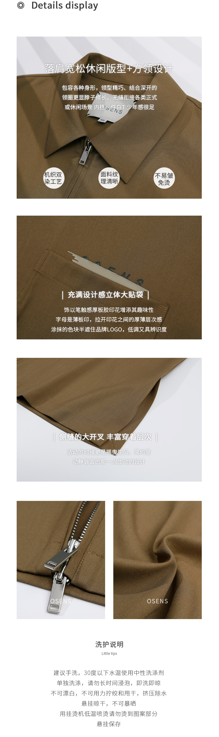 服饰箱包、运动户外 > 上装 > OSENS 男装 复古小特别口袋装饰短袖拉链衬衫夹克上衣