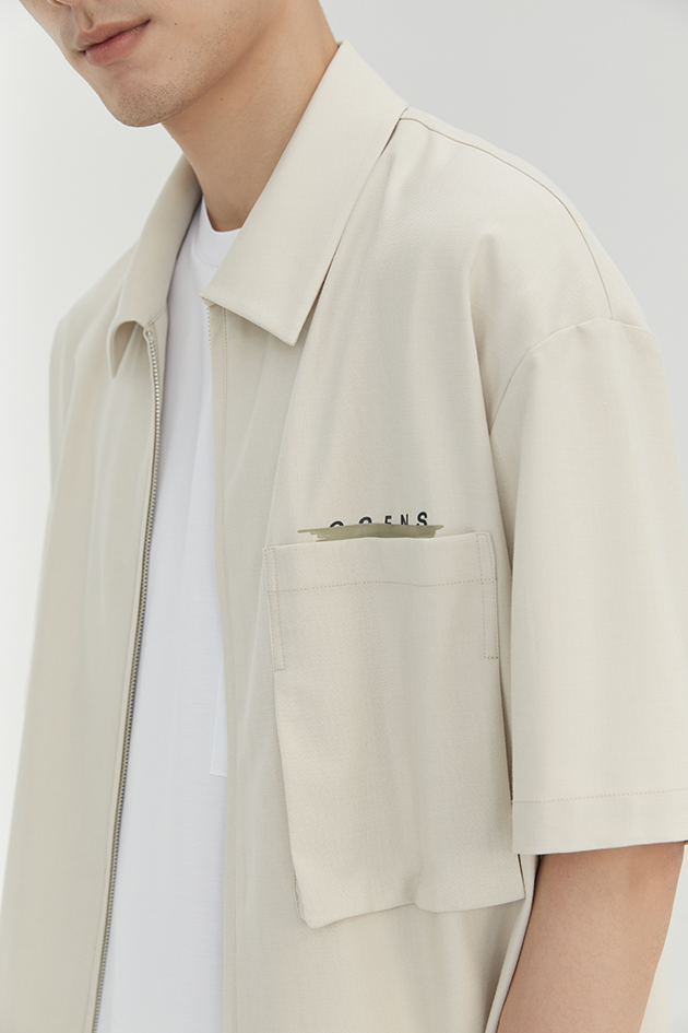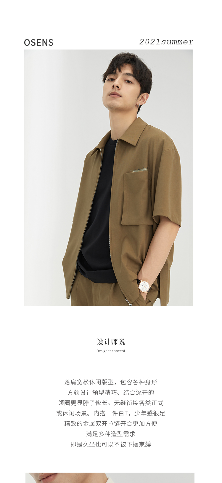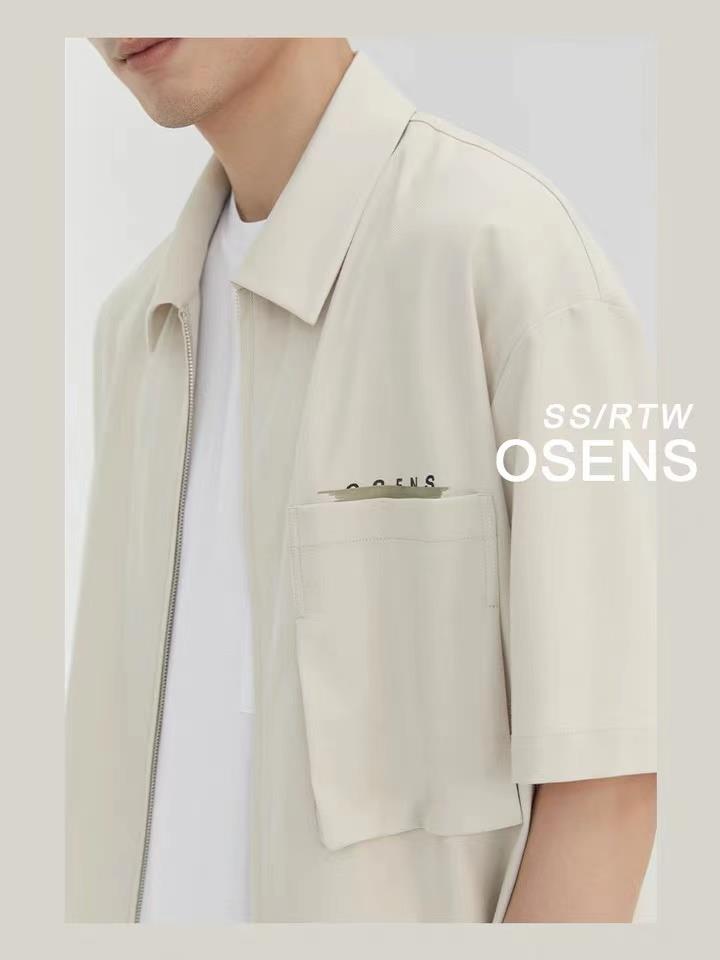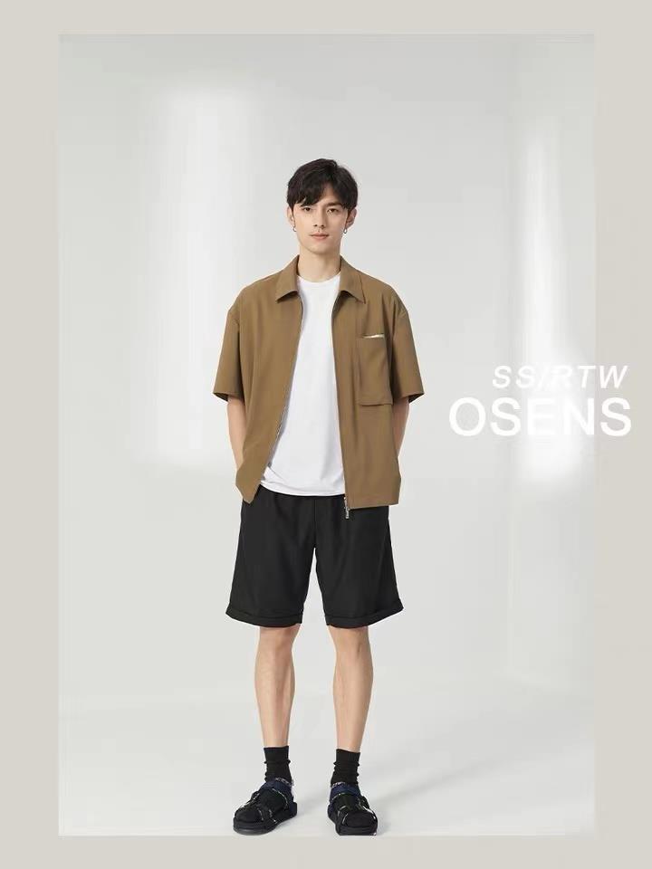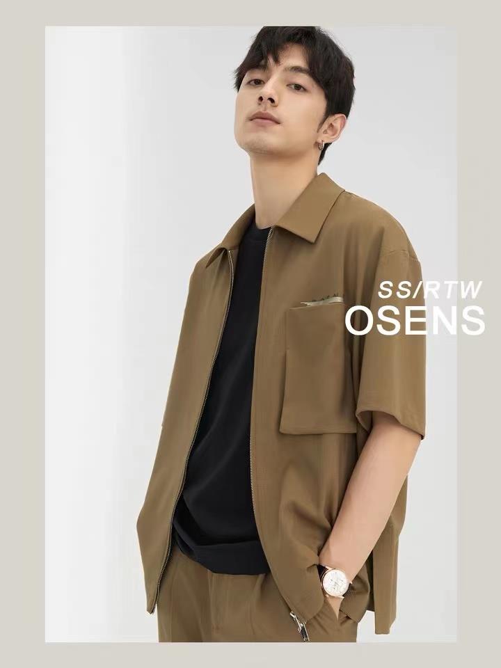 OSENS 男装 复古小特别口袋装饰短袖拉链衬衫夹克上衣