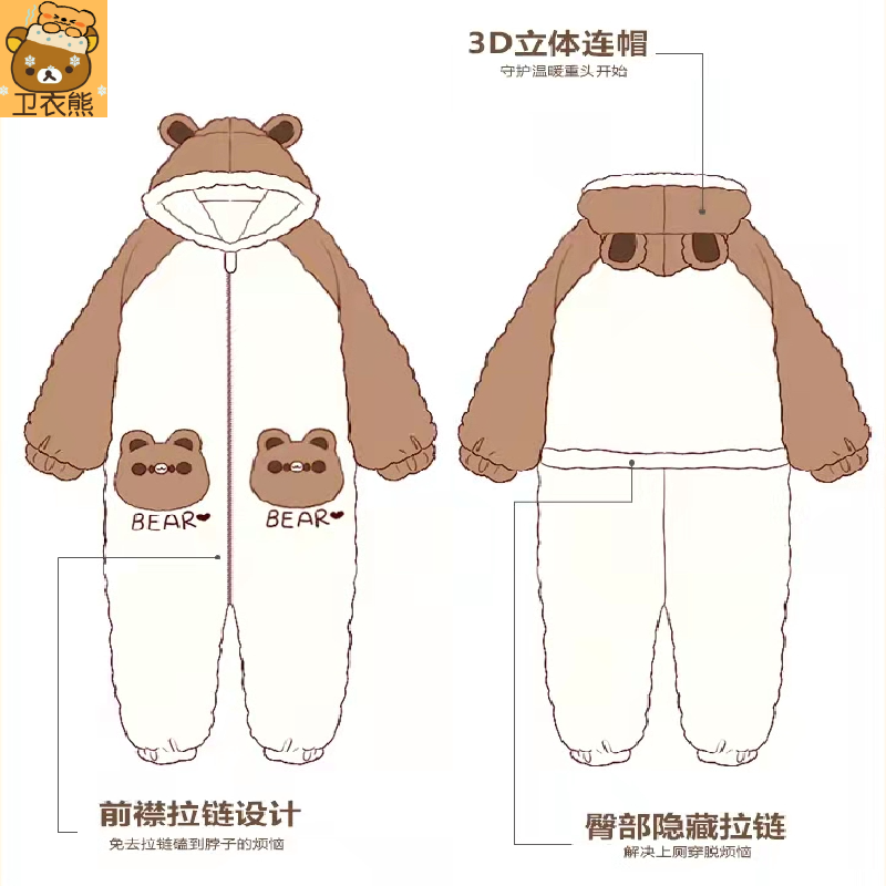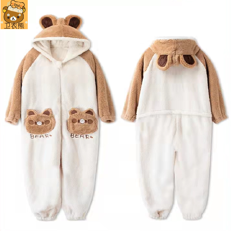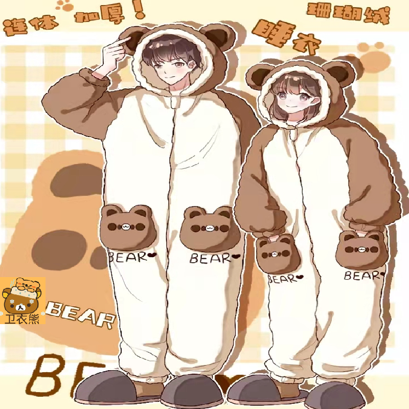 冬天珊瑚绒情侣连体睡衣男女士可爱加厚秋冬法兰绒家居服