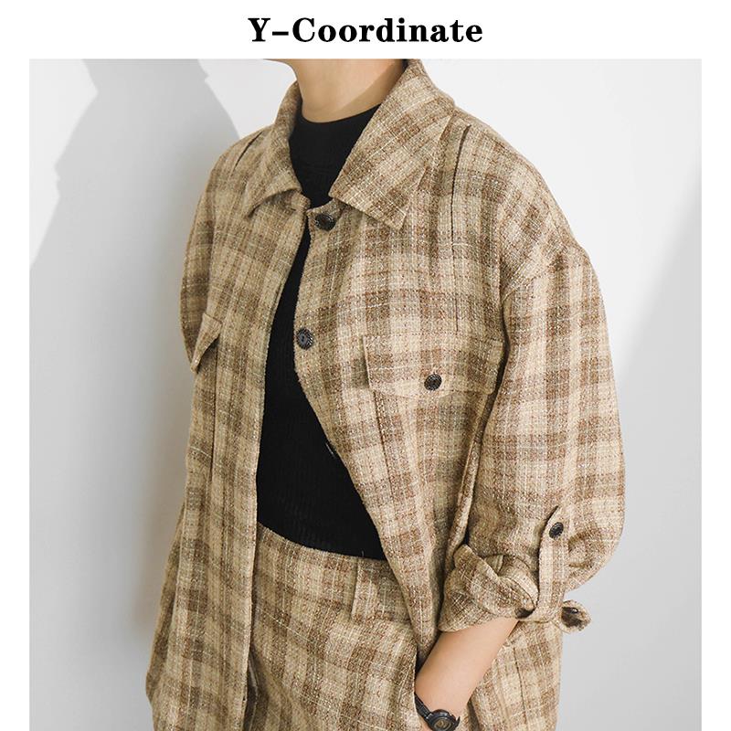 Y-Coordinate原创女装高级感意大利进口棉麻混纺格子休闲简约套装