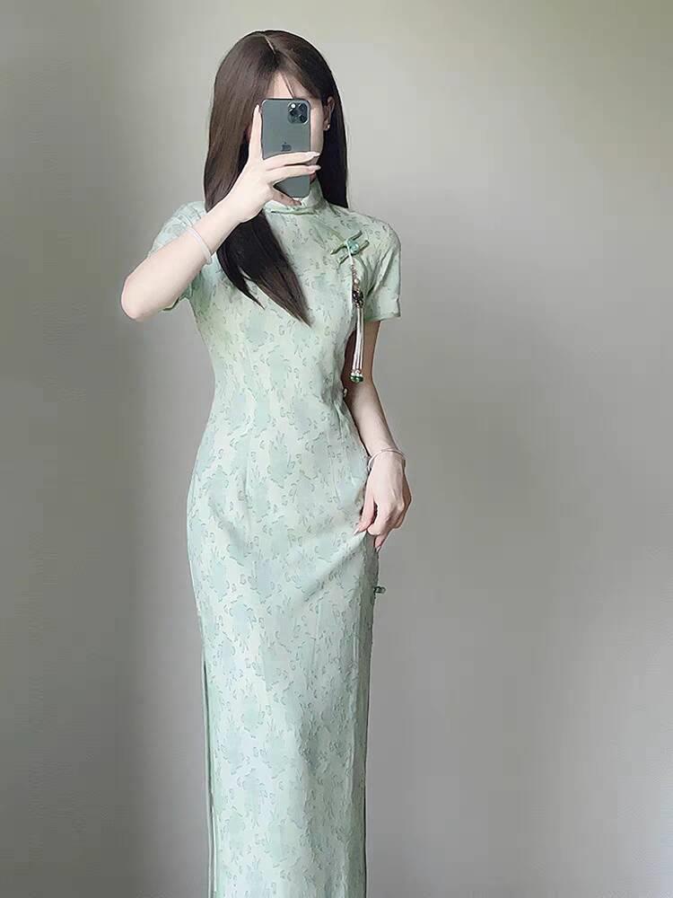 旗袍追随着时代,承载着文明,显露着修养,体现着美德,演化为天地间一道绚丽的彩虹。旗袍的设计简约而凝练,紧身的裁剪将东方女性的柔美曲线凸现出来,具有东方式的象征风格,代表着东方女子温顺文雅的品质。旗袍在20世纪20年代之后成为最普遍的女子服装