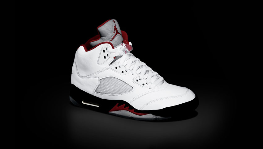 球鞋介绍:AJ5首次在鞋底采用了透明橡胶素材,也是电影《回到未来2》中的未来鞋所采用的材质,可以发挥高度抓地力。而为了推展轻量化的运动鞋,在鞋侧边采用网状布面取代皮面,前脚掌弯曲凹槽中首度加入气垫,增加其弯曲性。