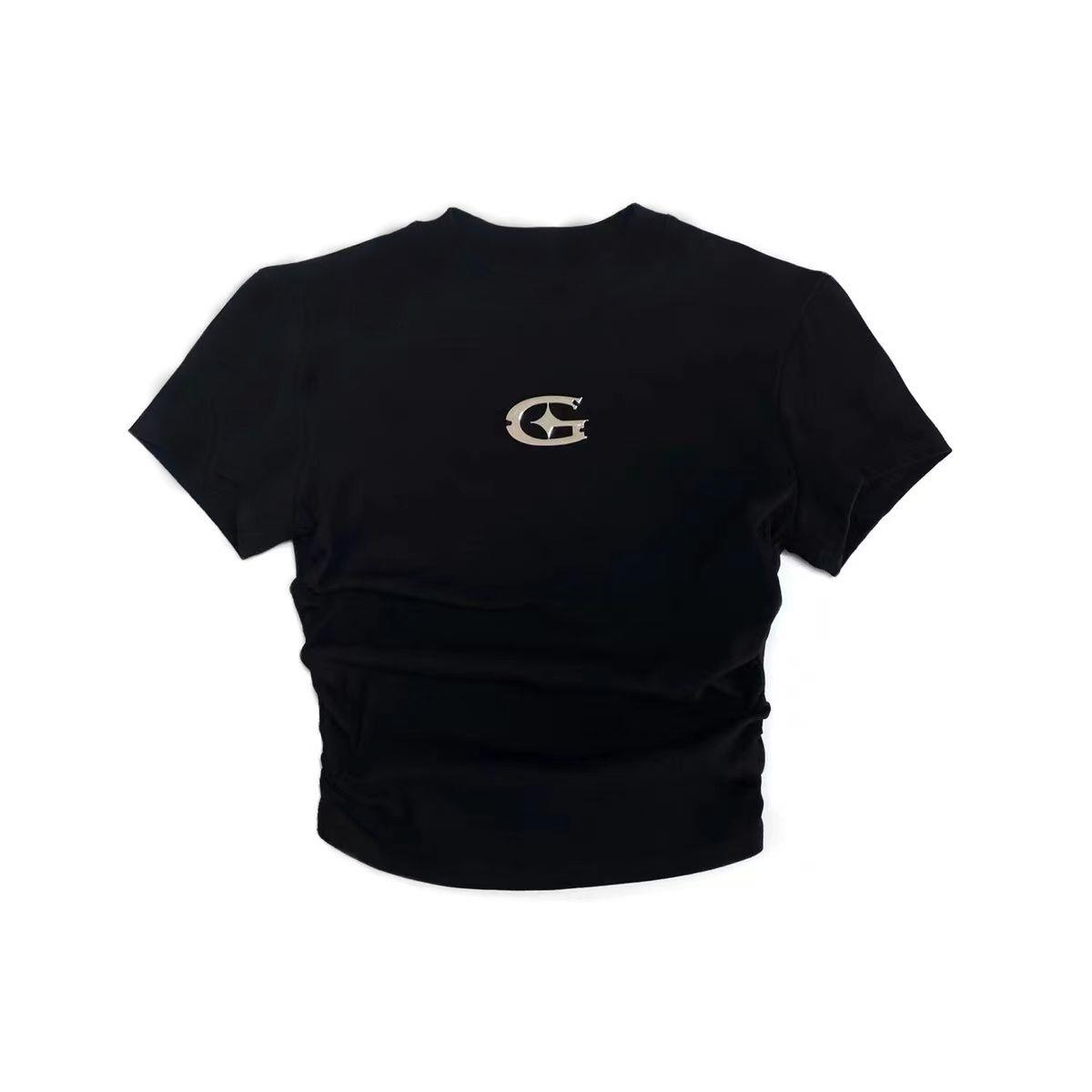 服饰箱包、运动户外 > 上装 > 2024最新 纯棉美式复古辣妹短款 上衣T恤 纯欲风