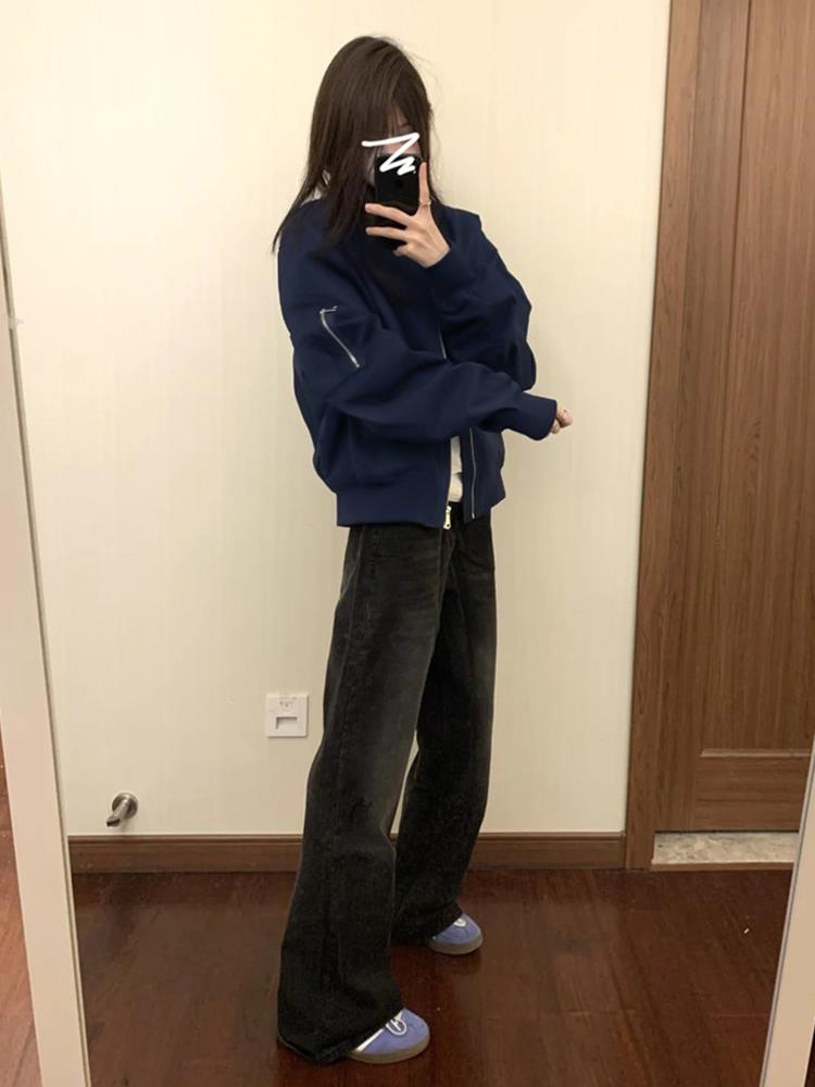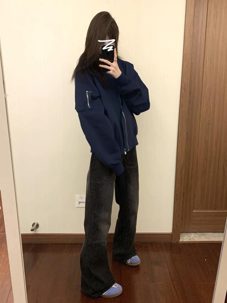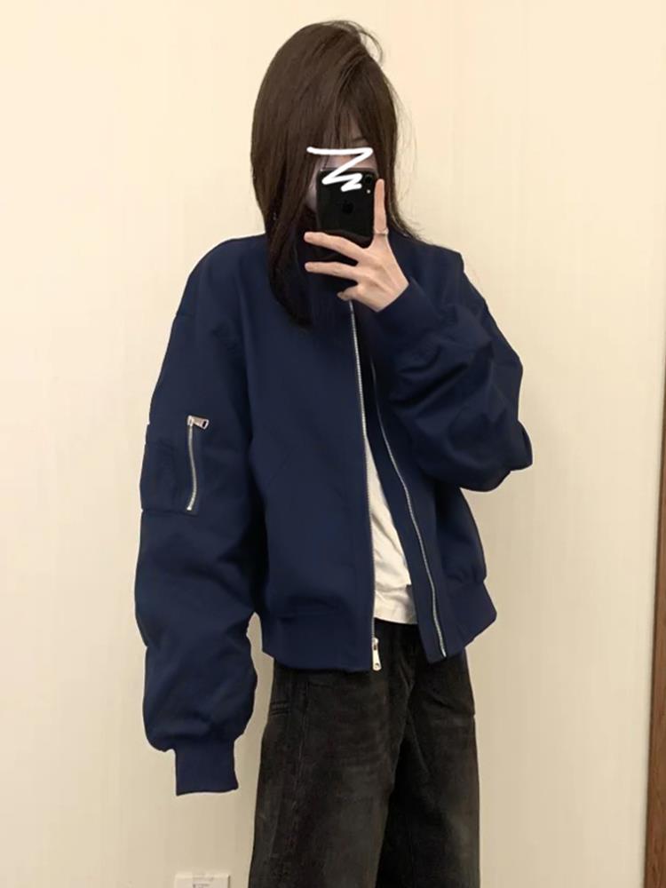 初冬新款美式复古外套女秋冬季休闲宽松棒球服飞行员夹克上衣