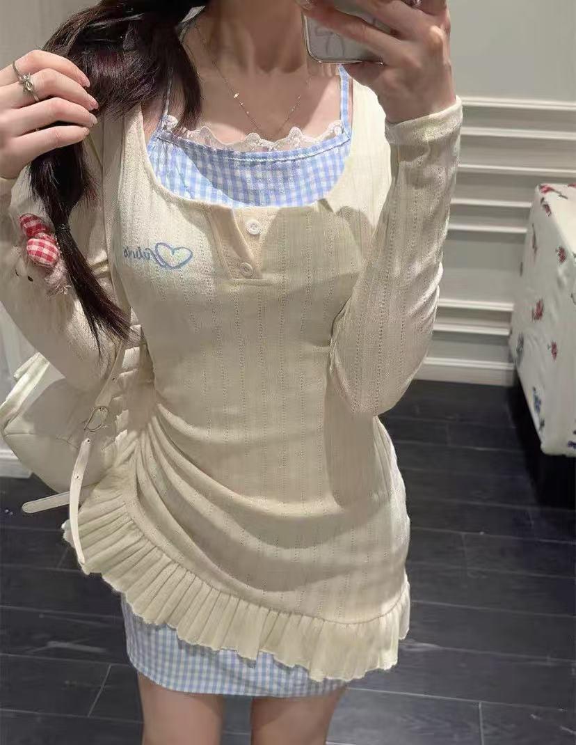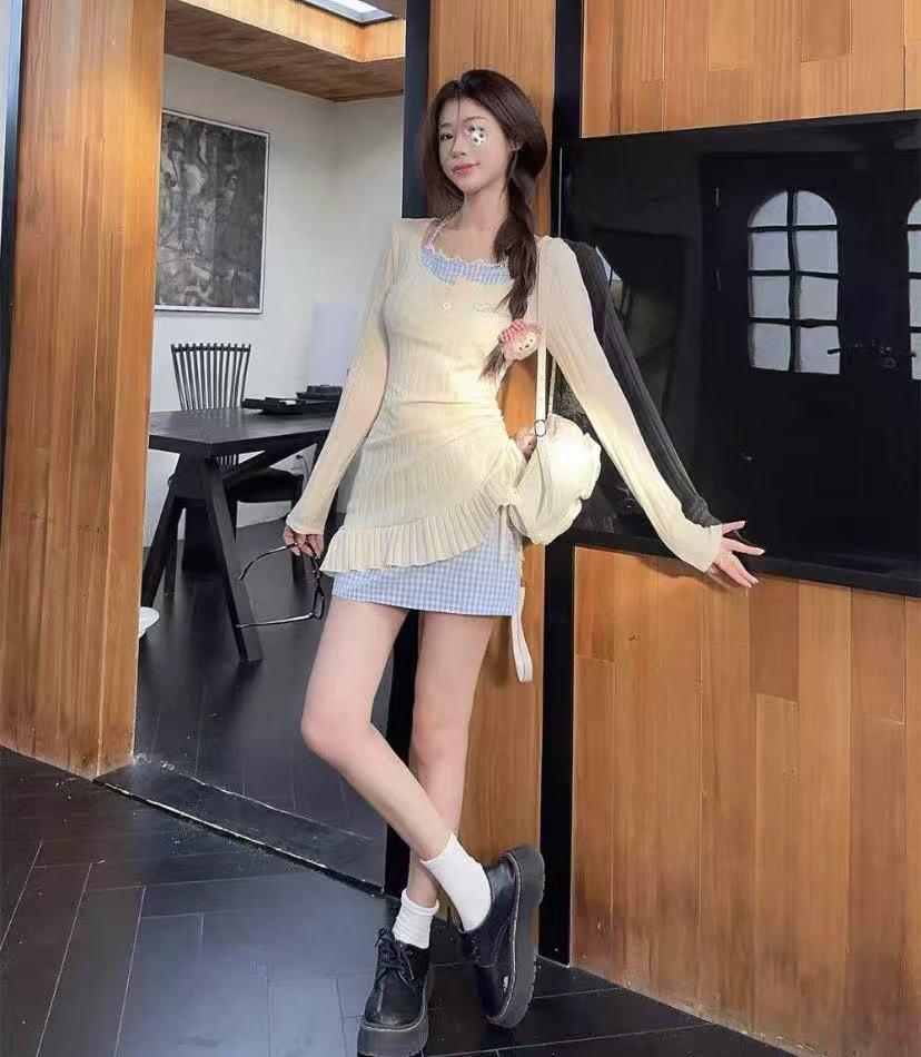 • 商品名称:甜辣妹挂脖假两件长袖连衣...