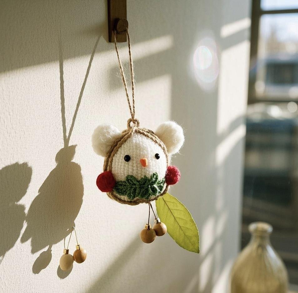这款手工编织挂饰,以可爱小动物形象呈现,萌趣十足。