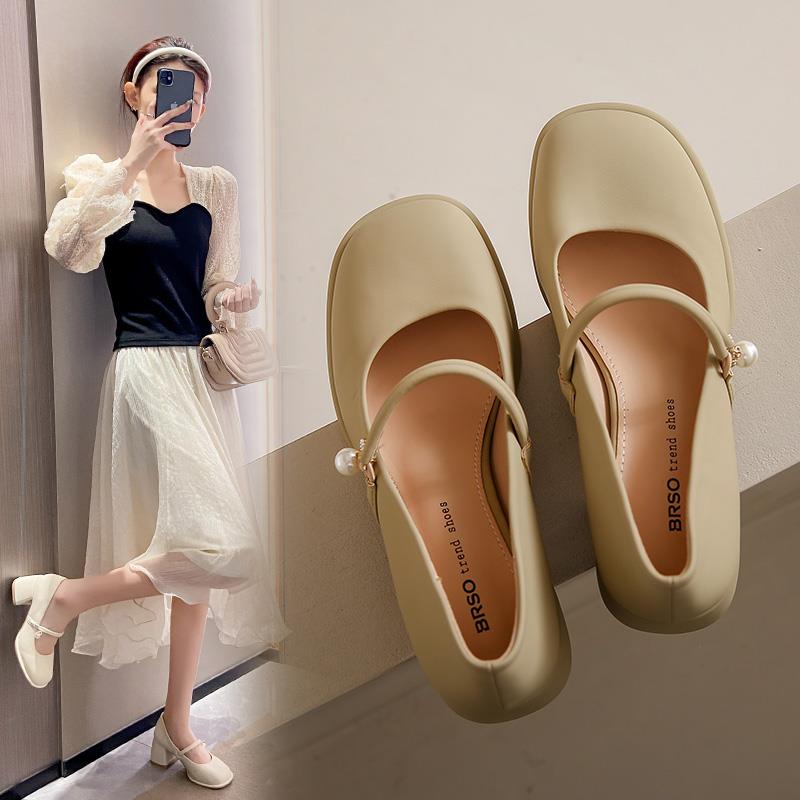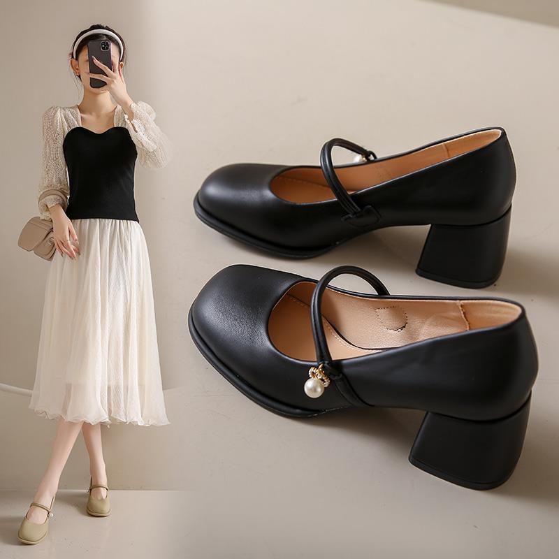 优雅高跟鞋防水台复古仙女风软底温柔浅口玛丽珍小皮