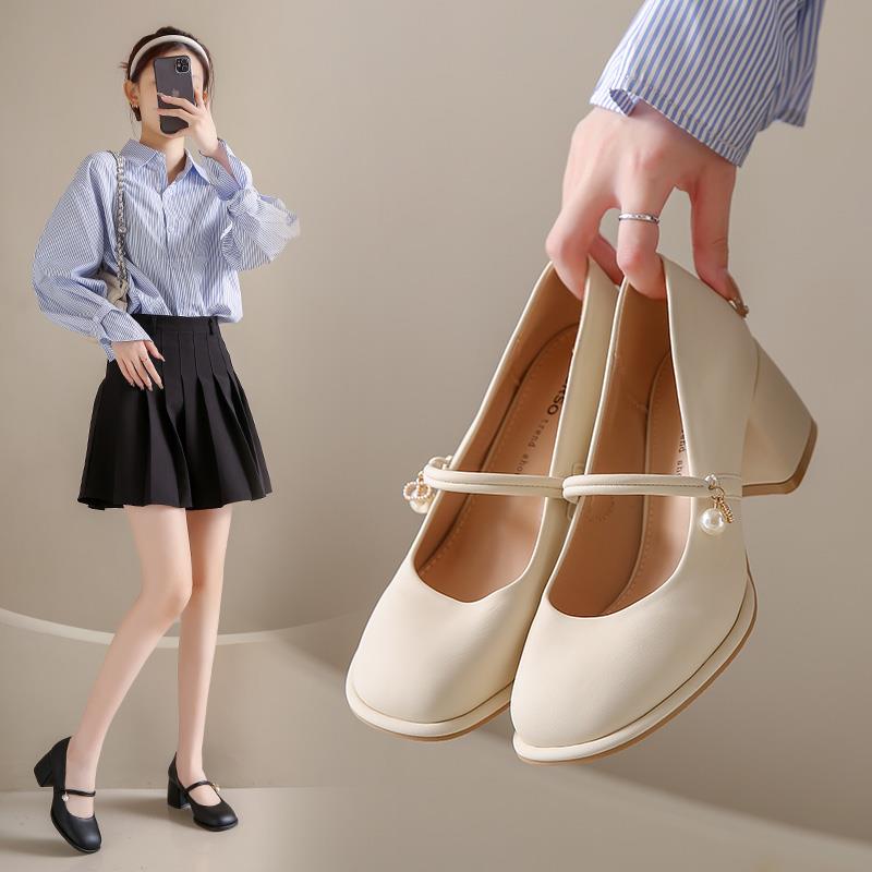 服饰箱包、运动户外 > > 优雅高跟鞋防水台复古仙女风软底温柔浅口玛丽珍小皮