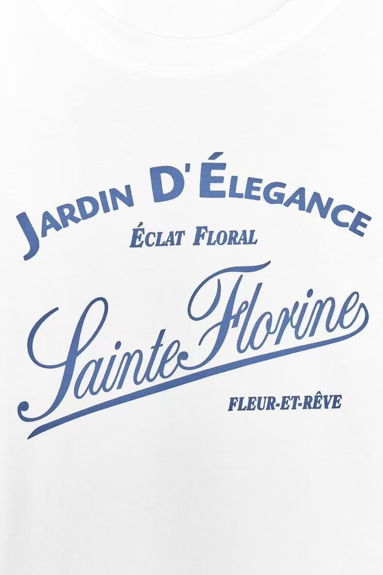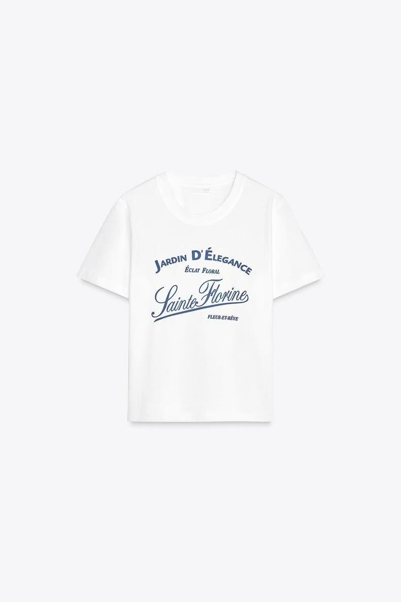撞色印字 T 恤修身直筒 - 圆领 - 常规衣长 - 短袖