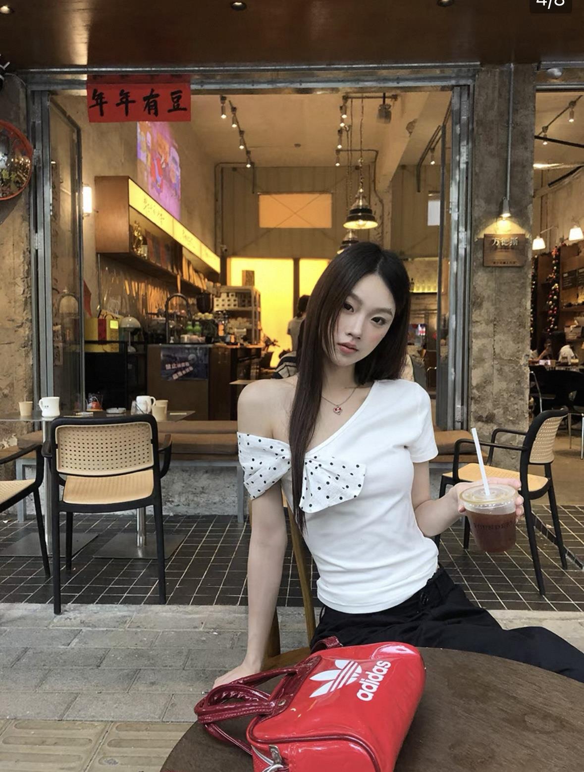 单侧斜肩设计,露出精致肩颈线,小性感拿捏~波点蝴蝶结点缀,自带俏皮甜美元气,打破单调,瞬间让穿搭灵动起来💃 修身版型贴合身形,勾勒曼妙曲线,白色基础款适配度拉满,搭黑裤走甜酷风,配短裙秒变纯欲少女,日常出街、约会、探店…各种场景轻松 hold 住!