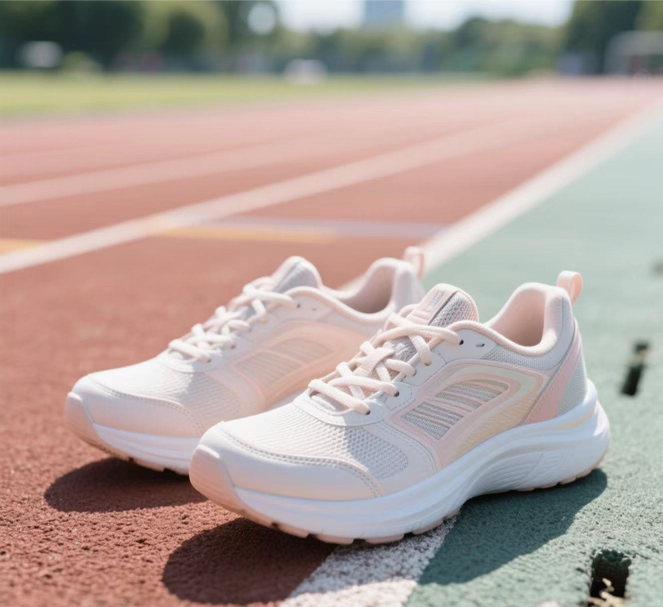 这是一款集科技与时尚于一身的夏季女性轻便跑鞋。采用了最新的超轻材料技术,使得鞋子的重量大幅降低,却依然保持着出色的耐用性。鞋面的透气网眼运用了先进的空气动力学设计,能够迅速排出脚部产生的热气和湿气,确保双脚始终处于最佳的干爽状态。