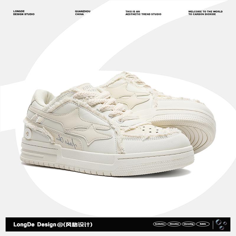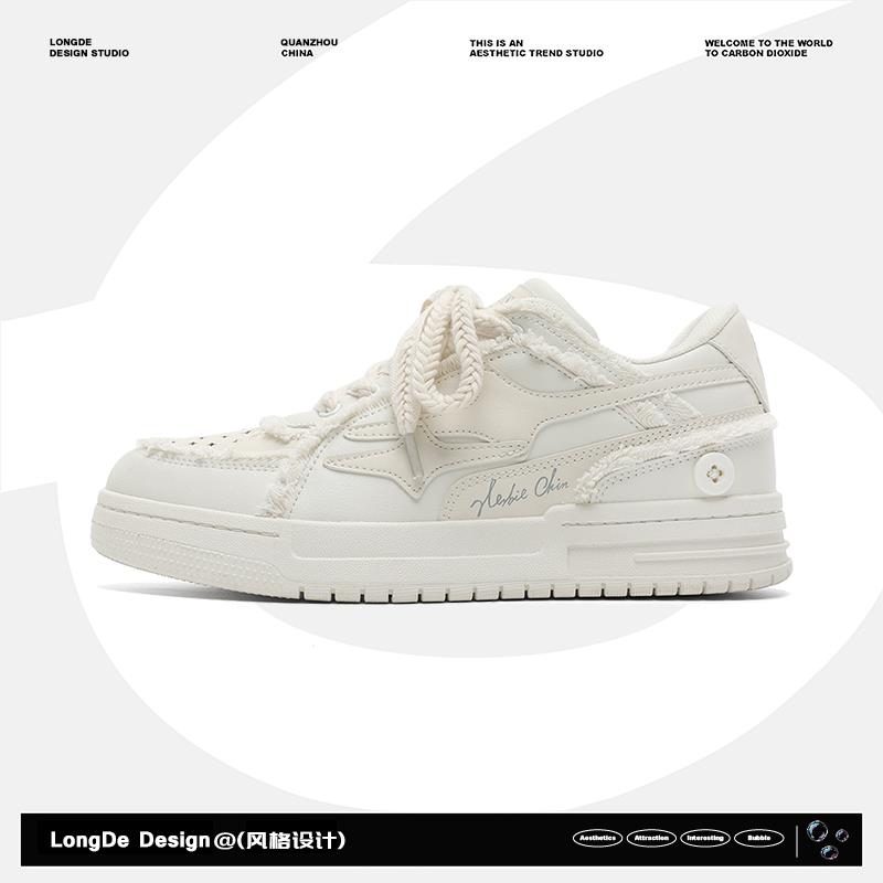低帮鞋品名: 板鞋功能: 耐磨图案: 纯色场合: 日常季节: 春秋款式: 板鞋跟底款式: 平跟销售渠道类型: 纯电商(只在线上销售)闭合方式: 系带鞋制作工艺: 胶粘鞋鞋垫材质: 布鞋头款式: 圆头鞋底材质: 橡胶鞋跟高: 平跟鞋面内里材质: 网纱鞋面材质: 超纤皮风格: 青春潮流流行元素: 翻边适用对象: 青年