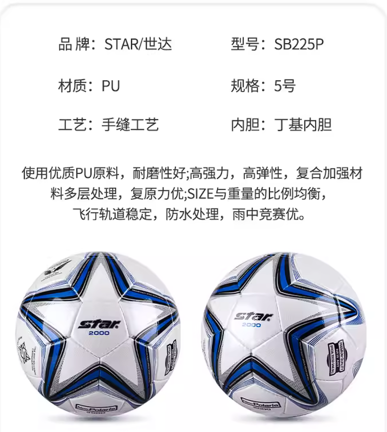 不管是日常练球、校园比赛还是周末约球友野踢,这款世达 SB225P 都能稳稳 hold 住 —— 耐用、好踢、省心,是性价比拉满的实用款足球!