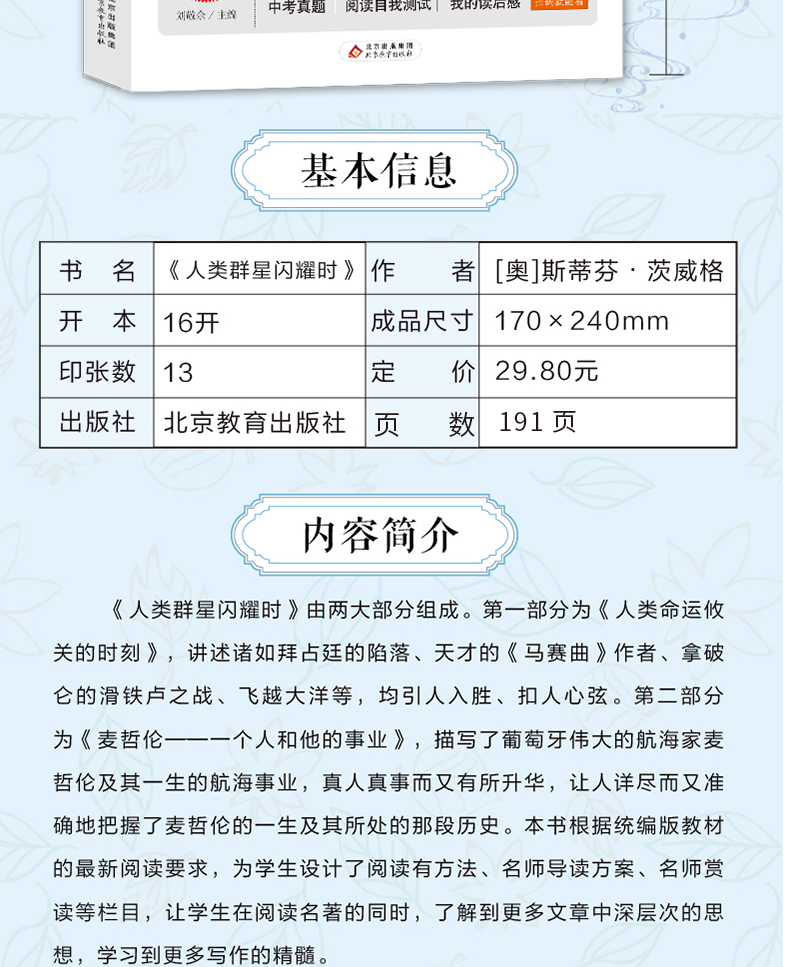 图书、音像 > 留学 > 【满49减15】人类群星闪耀时 (无障碍阅读版)名著+导读+考点/三四五六七八九年级中小学生/统编语文教材指定阅读丛书