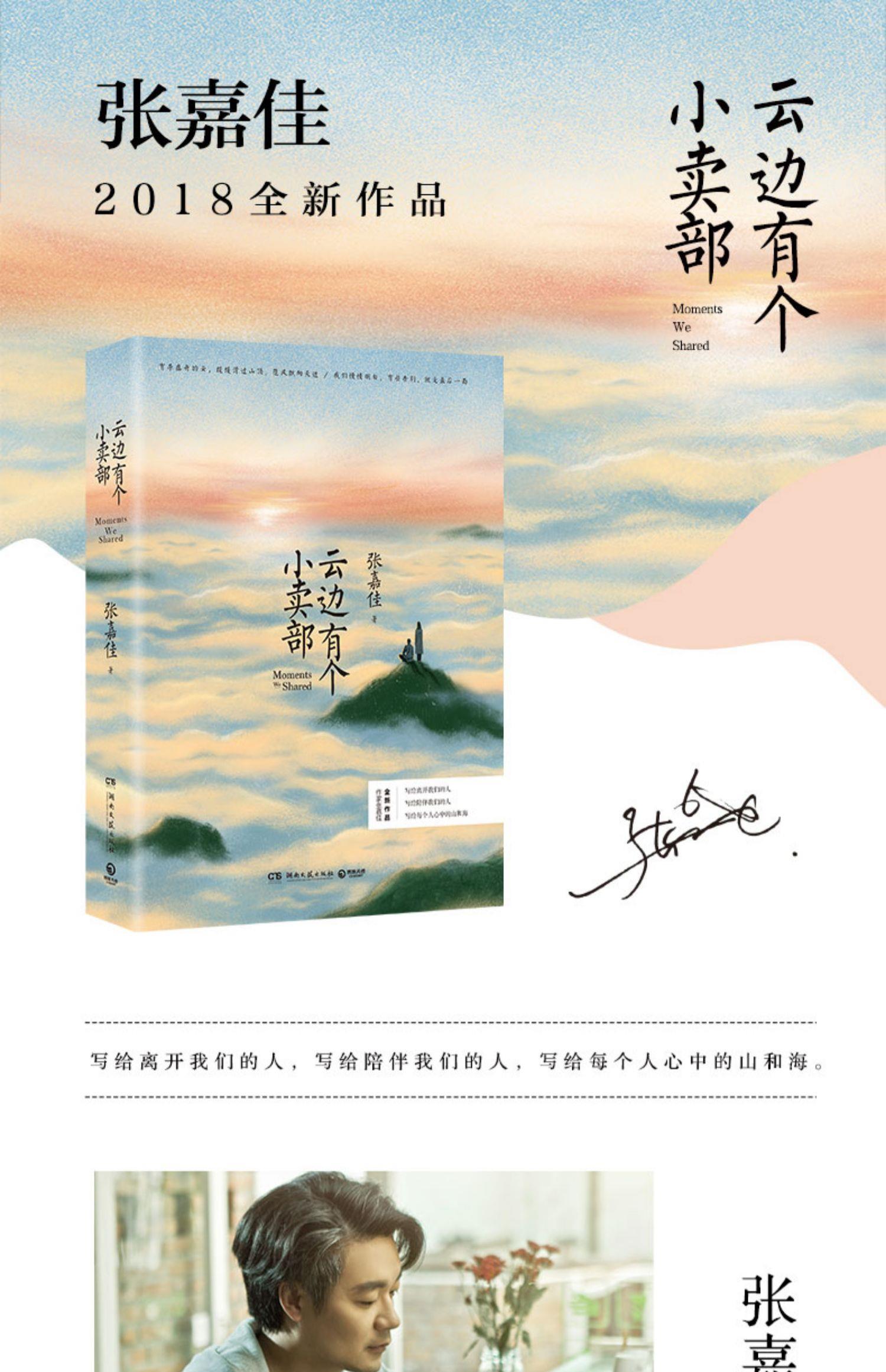 张嘉佳在接受媒体采访时介绍了《云边有个小卖部》的创作经历。“我之前写爱情写得比较多,所以这次想换个题材,写人和他自己的故乡,以及亲情。整个书里面家乡的原型其实有蛮大一部分是我的家乡——江苏南通的一个小镇。另外,我以前旅游的时候特别喜欢贵州,所以就从贵州挪了一座山过去,把它们拼成了一个家乡的概念。”“《云边有个小卖部》里性格彪悍又温柔的外婆,我是照我外婆写的。女孩程霜是有原型的,我们小时候就认识,后来她转学去了大城市治病,我们一直通信。她从12岁得病起,扛了17年,还是没扛过去。”